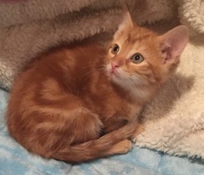 Dino is an adorable 9 week old (as of 1/27/17) male kitty living in a foster home. A little shy but warms up quickly. This handsome orange boy will only be placed in a home with existing young kitten or cat.Â