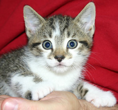 Lilly has been adopted and only Dublin remains available. Dublin is a happy kitten who loves to chase his toys. This little purr machine is a super frienly kitty who loves to snuggle. Dublin is in a foster home with children, other cats and dogs and loves them all. Dublin will make a wonderful family pet.