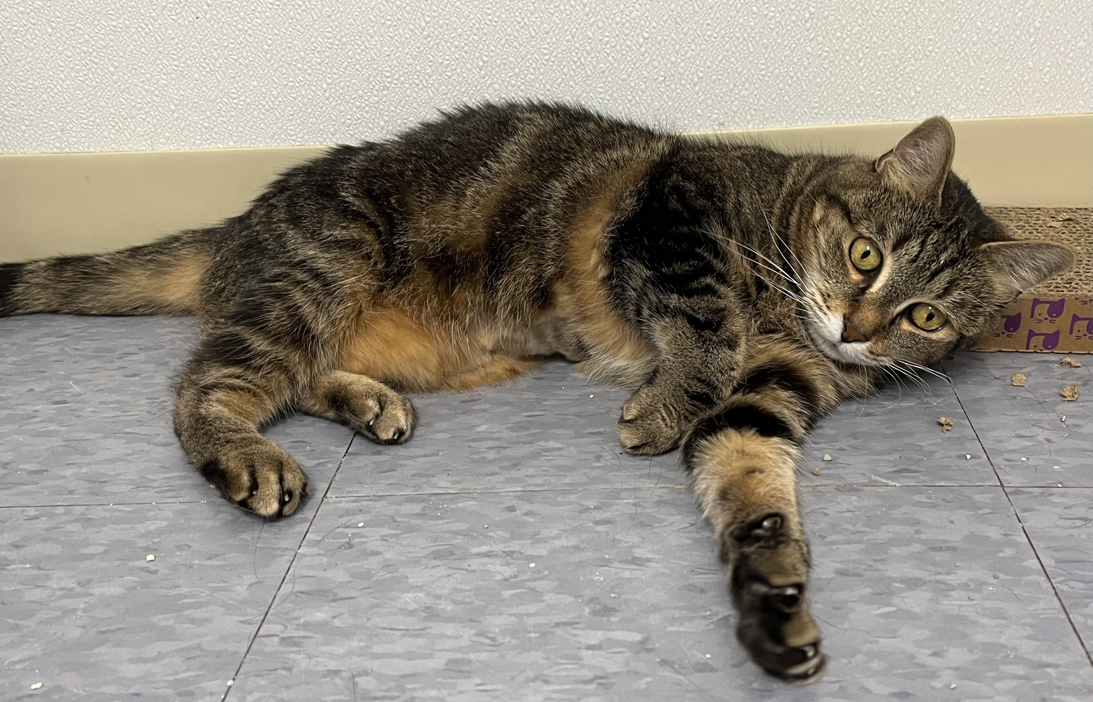 Born June 2013 EJ is a classic tabby with a calm nature. Sadly, he lost his home when his owner passed away. EJ loves to lounge in the sun or any soft bed. He will actively give you a nudge for pets and show his happiness with a tail straight up in the air. He is looking for a home where he can be loved again and bond with his person. EJ would do best in a low key household without dogs or young children. He is comfortable with other feline friends.