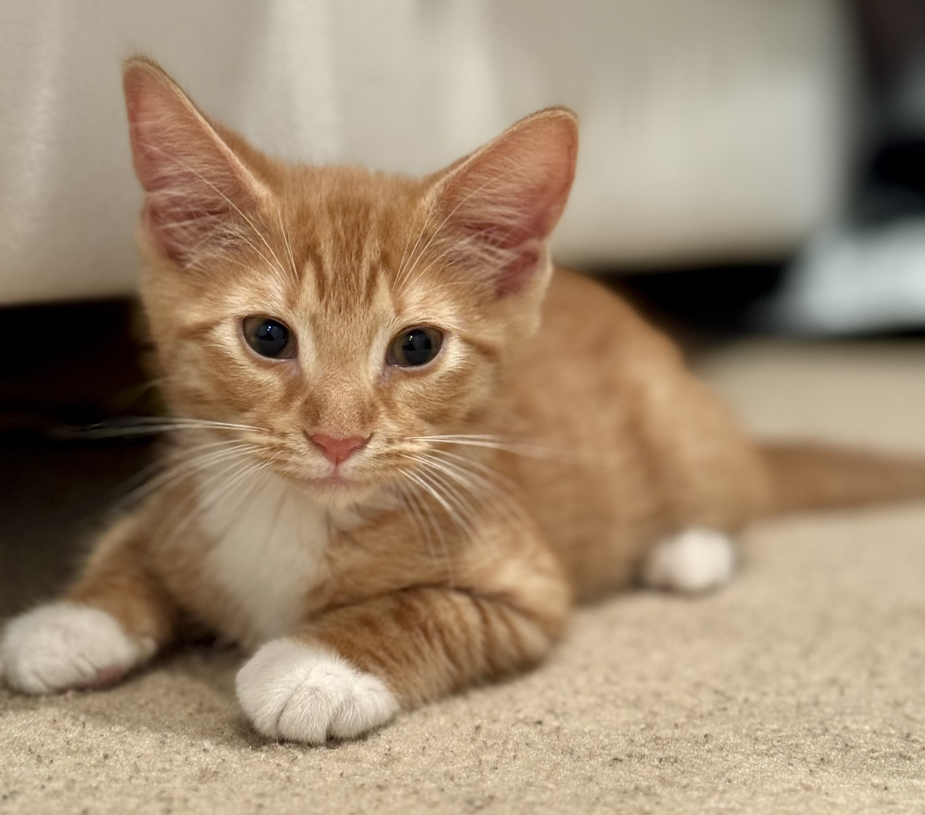 DOB: 5/17/25 Easten is a beautiful orange kitten with adorable white paws, bib and tummy. He has a heart full of curiosity and adventure. Whether he's exploring new corners of the house or pouncing on his toys, Easten brings energy wherever he goes. He's incredibly affectionate and thrives on companionship. If he's not curled up sleeping next to you, he's likely snuggled up beside a feline playmate. When you come home, Easten will be the first to greet you with purrs and love. He would do best in a home where he has another furry companion.