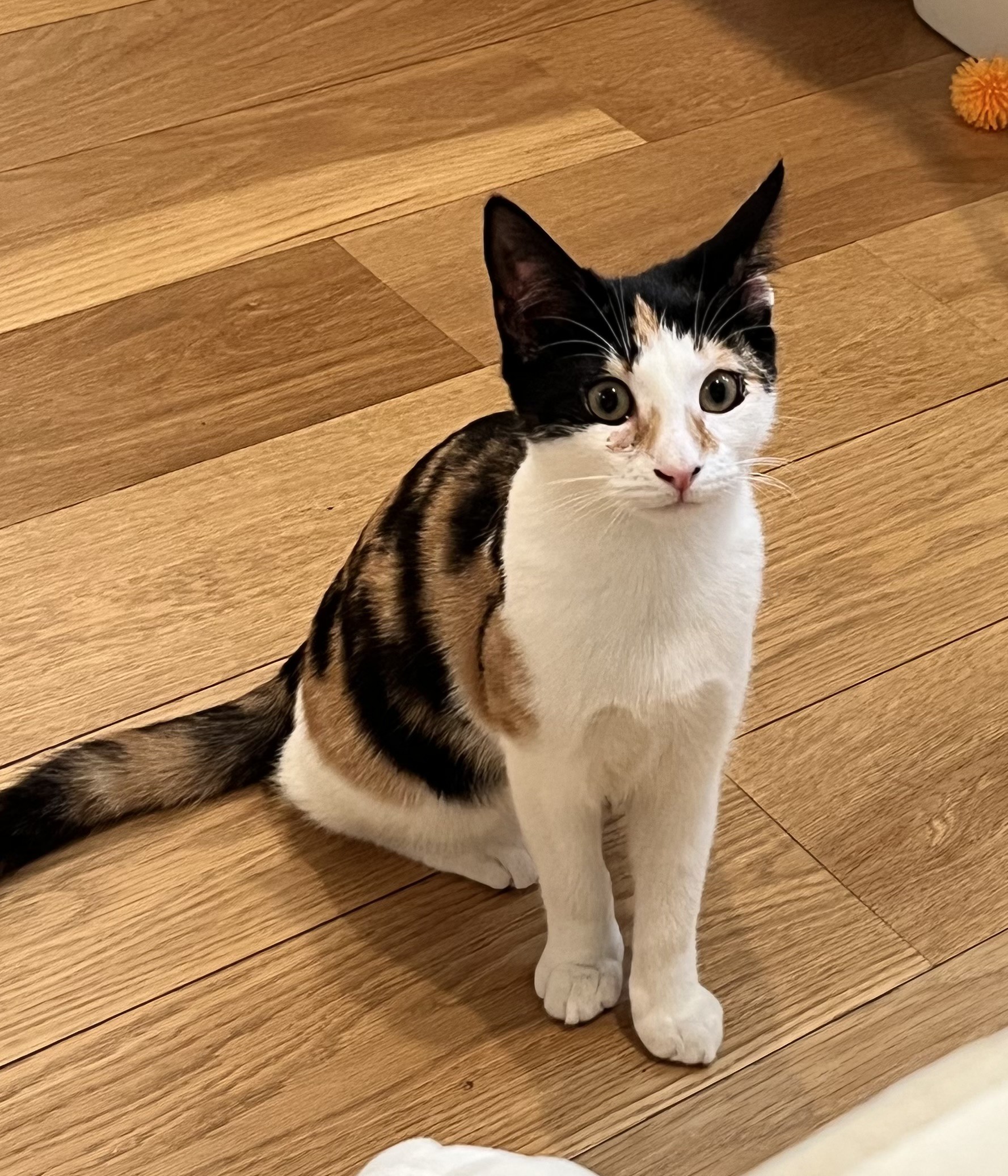 DOB: June 21, 2023 Ember is a sassy little kitty and a total love. Though a tad shy at first, she will open up quickly. Once she does she is a total love bug and purring machine who will consistently give you a loving nudge and reminder to keep the pets coming! Curious and perceptive, she loves her play time, especially fetch with her toy mice and hunting for treats! With a little patience you will have a companion for life!
