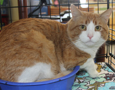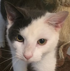 Born 2013 Elliot is a handsome guy with a low key personality. He would make a loyal and loving companion. Elliot enjoys pets and will tilt his head so you can scratch his favorite spot under his chin. If you stop too soon, rest assured he'll give you a nudge for more. Elliot came to the Kitty Cottage after his owner passed away. He has a lot of love to give and is ready for a second chance at finding a forever home.