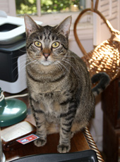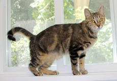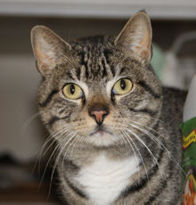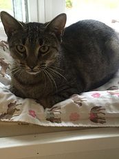 Erin is a sweet, very petite one year old kitty with the most wonderful purr! This lovely brown tabby just purrs, purrs and purrs some more. She also enjoys being picked up by a favorite human and will happily sit on the windowsill and watch what is happening. Erin is a complete and utter love. A true sweetheart! Erin can be visited at our Kitty Cottage.