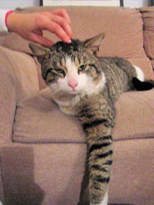Elvis is a little tabby with a large personality. He was abandoned on the streets at a young age, and is still shy around humans. However, you have never seen a more curious and playful cat. Every toy is fascinating, every noise or movement is a good enough reason to investigate! This one year old will be a kitten - at least mentally - forever. Elvis resides in the same foster home with Socrates and the two get along beautifully. They can even be considered a bonded pair. Please come and meet this very deserving cat. To visit Elvis contact Ellen at 917-543-6092 or email ellenmaher@msn.com.
