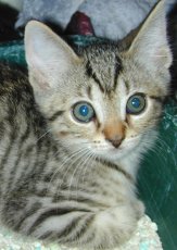 Eddie is an adorable kitten, about 7 weeks old. Sweet, playful and stunningly beautiful! He and his brother David are the sweetest little guys and love to snuggle up together on a big soft bed when they are done playing.