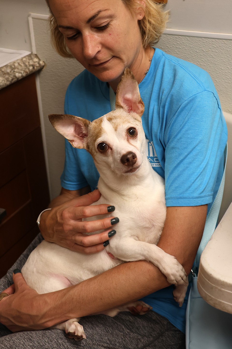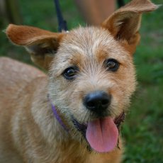 This little munchkin weighs only 9 lbs. She is a terrier mix who very sweet and just adorable! She is as friendly as can be and is great with people, dogs and cats.