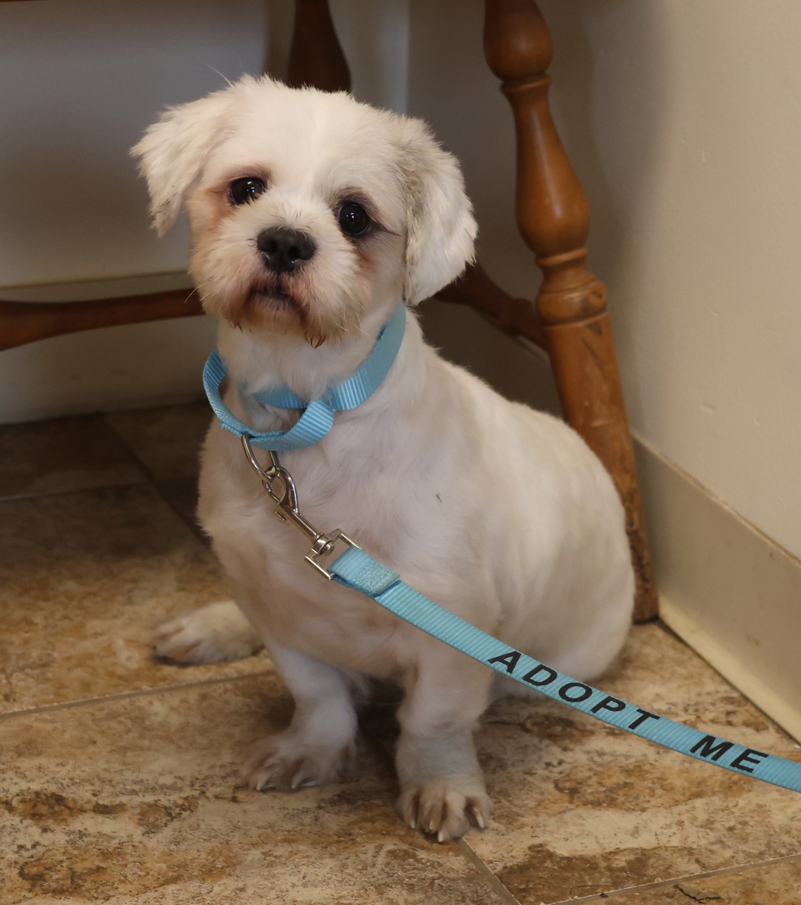 is a cute Wirehaired Terrier, about 4-5 months old and 18 lbs. He is very friendly and playful yet calm for his age. Please fill out an adoption application.