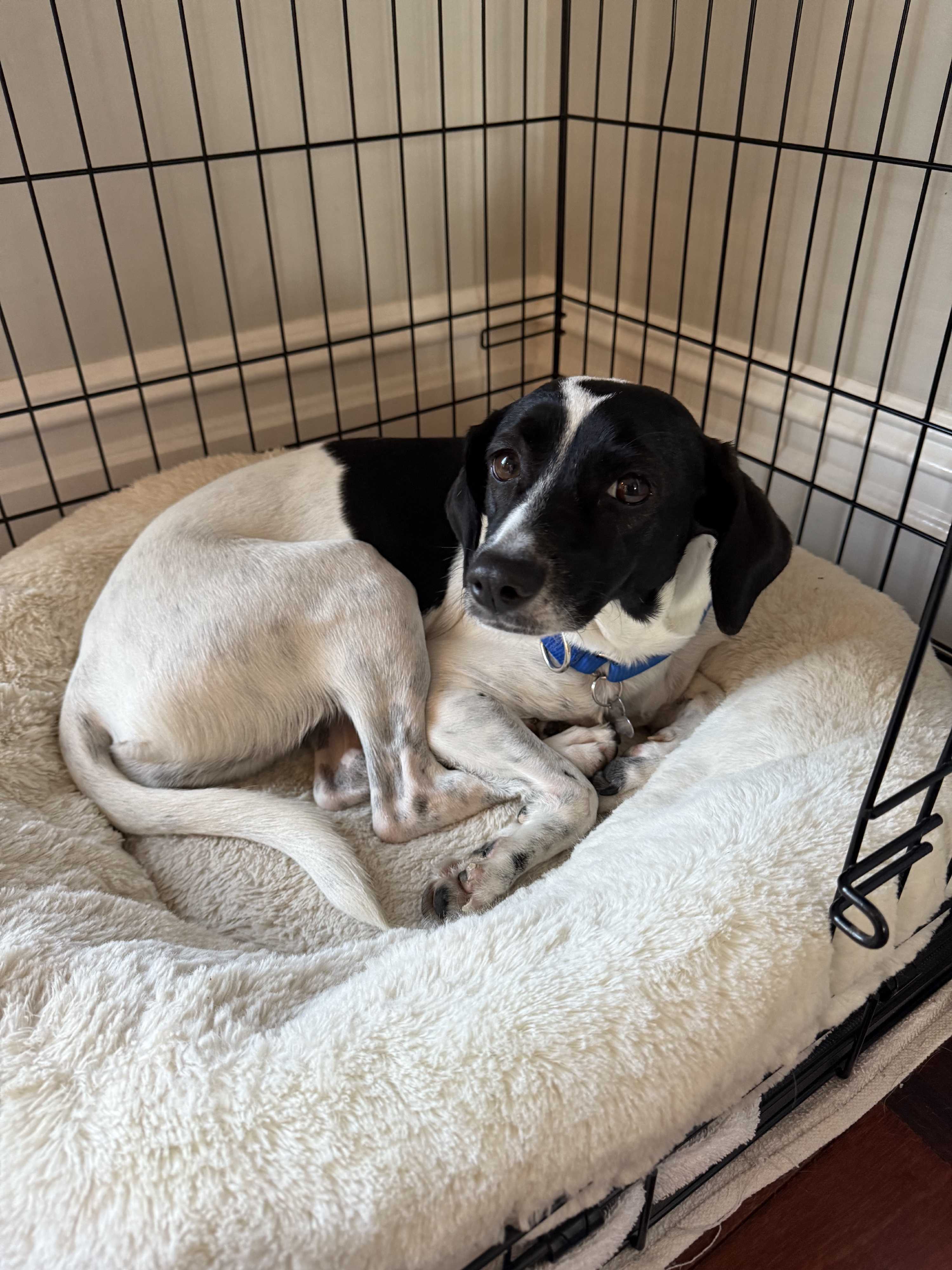 Esme, one of Tisha’s pups, is an incredibly cute approximate 10 week old beagle/hound mix. She loves to snuggle and is so super sweet. Esme loves playing with her sister Nessie in her foster home and is doing well with paper training.