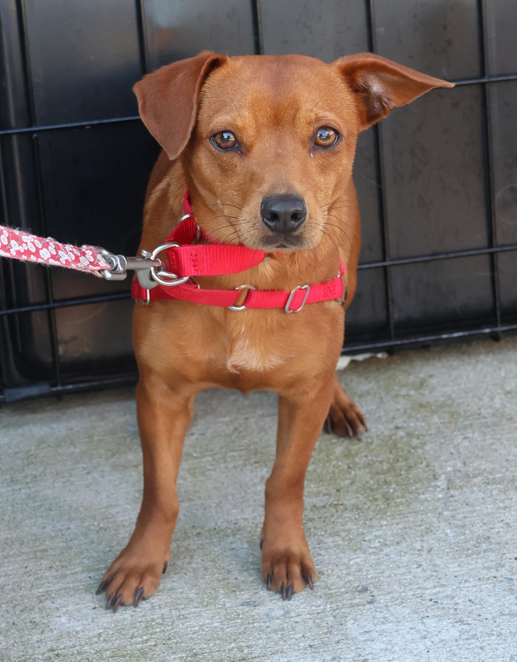 Ethel is a Dachshund/spaniel mix, 8 months old and 20 lbs. She is a sweet girl that loves to play.