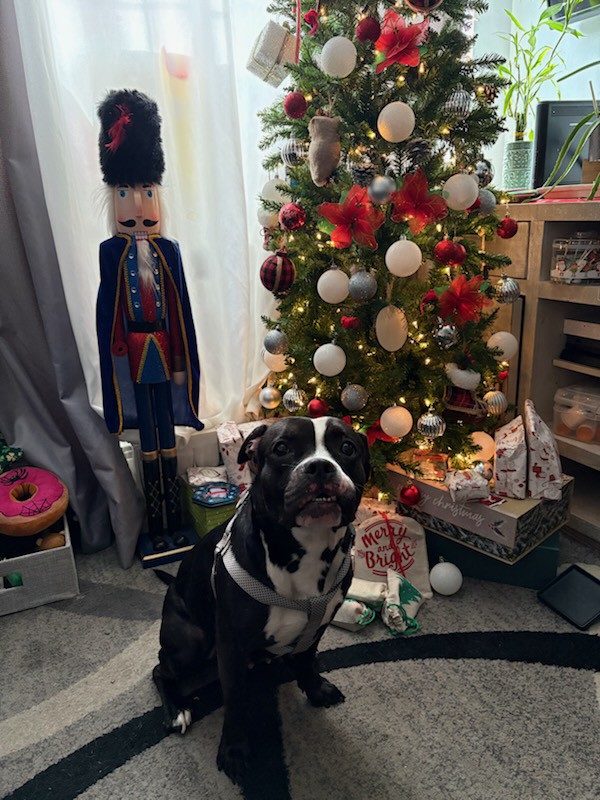 Elf is an approximately 3 month old female Boxer (?) mix fun-loving puppy that always wants to play! She is always bursting with happiness when you come home! She will jump into you’re lap and loves to be held !!! Elf is living in a busy foster home with kids and other dogs and is having a great time. She is a wonderful family dog :)