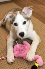Ethel is a 4 month old Siberian Husky mix with a ton of energy and a desire to pull the sled and race already. She is very strong, but when she sits on your lap, she loves to give kisses! She enjoys playing with her toys immensely and her foster brothers even more. Ethel is very close to being completely housebroken, sleeps great in her crate, gives a little yelp to let you know she has to go out to do her business. She is starting to understand basic commands. Ethel is catching on very quickly but needs someone to be very consistent, energetic and Alpha! Breed experience preferred.