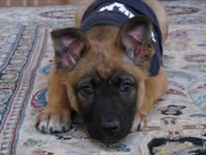 Erica is an adorable Shep mix puppy that is very sweet and playful. She has a beautiful brown coat with black markings and is about 13 lbs. She's a very smart little girl and too cute for words!!!! She sits on command and is paper trained at only 10 weeks old. Plus, she brings her ball back to toss. We think she'll be a medium to large dog. What a sweetheart.