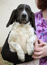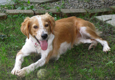 Erin is a sweet young girl who enjoys running around the yard playing with the other dogs in her foster family. She is a high energy dog that will need an experienced home that can provide plenty of structured exercise daily. She is working on her basic manners and has learned to walk well on a leash and ride well in the car. She has a funny little personality and if you ignore her she will bark to get your attention. She loves to be near people, and gives lots of kisses when she is excited. She will snuggle on the couch after a long day of fun and frolic. Sex: F Age: 1-2 years Weight: 35 lbs Breed Mix: Brittany Spaniel mix Shed: Yes Energy Level: high House Trained? mostly Good w/ Dogs? Yes Good w/ Cats? No Good w/ Kids? Yes (over 7 years)