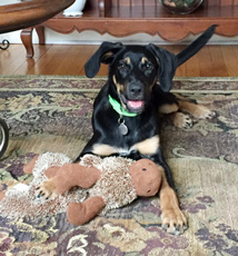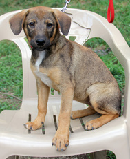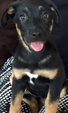 Etta is a 4 month old Shepard mix. She is very outgoing and loves other dogs. She also likes to snuggle up and give her humans lots of kisses. She will likely grow to be a big girl. She is going through a "chewy" phase right now so she would do best in a home with older children.