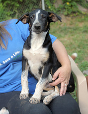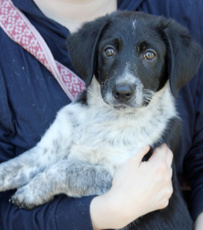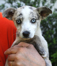 Eva is approx. 10-12 weeks old and about 7lbs. She looks like an Aussie mix with multi-colored short hair and beautiful blue eyes. She has lots of puppy energy and loves to play. She is good with people, dogs, cats and should be fine with children. She is a very smart little girl. She likes to be in on the action. She loves to be in your lap and gives lots of kisses when she sees you. She plays well with stuffed toys and is learning to play fetch. She would probably be good at agility. She walks really well on a leash at your side. She is housetrained if you bring her out on a regular schedule.Rescued in the WV trip. Thank you Olaf Jeziorek for sponsoring our ticket to freedom!