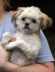 Sweet little Evie was born with a birth defect. Her hind legs have no joints and as a result she can't bend them. Don't tell her that since she does not know there is anything unusual about her. She is 8 weeks old and about 2 lbs. She is a yorkie/shih tzu mix and just the sweetest little girl. She can run with the big boys and holds her own quite nicely. she loves attention and will melt your heart with her sweetness.