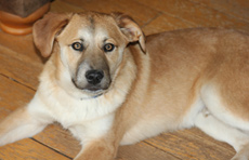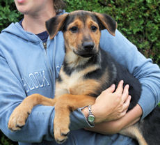 Evan is an adorable 4 month old male Shepherd/Lab/Husky Mix puppy. He is about 30lbs and very good natured. He fits in easily and is friendly with all - people, dogs and cats too. He is housebroken and when he looks at you with those big brown eyes, he melts your heart. He loves exploring on his walks, loves to play with his toys yet is mellow and calm - and a real snuggler too. He is a joy to have around and will make a wonderful addition to any family!