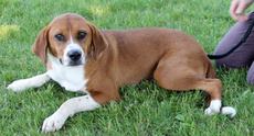 Eva is a sweet 1 year old female tri-color beagle around 20 lbs. This little girl is a real gem! She is kind, gentle and easy to have around. She is housebroken, sleeps through the night without a peep and follows you all around the house. She is good with other dogs and kids.