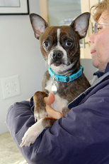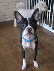 Eli is a sweet Boston Terrier puppy that is 8 months old and 15 lbs. Eli has been great with the other dogs and cats in his foster home. He loves giving kisses and enjoys playing with his tennis ball. Eli is crate trained and sleeps throughout the night without a sound.