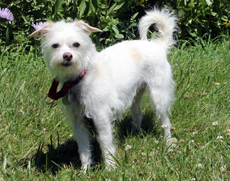 Evie is an adorable 3 year old, petite 8 lb. Maltese /Shih-Tzu mix, with silky long hair (she has a summer cut now) she's a little shy, quiet, and calm, a sweet kind little soul that just needs someone she can trust. Evie should be in a house with older children and would benefit from another small dog in the house. Evie loves belly rubs, sunbathing, car rides and going for walks. Evie is house trained and learned to ring a bell on the door just watching her foster home buddies- she's very smart. Evie likes cats (4 in her foster home) and other dogs. We love her, she's a sweetheart and has shown very good manners. Evie will make the right person a wonderful companion.
