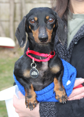 Eli is an adorable 4-5 year old Dachshund. He is a very happy, low key dog. He loves kids, cats and dogs. We just recommend that he goes to a home with children over 5 because he is easy to trip over. He loves breakfast and dinner time (its really the only time you hear him bark) and long walks with a harness. If you are looking for a couch potato, he's your guy!! He is housebroken if kept on a schedule and rides well in the car. He sleeps on his foster parents bed or the couch. He really loves people!