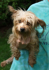Elena is an adorable Yorkie mix, about 2 years old and 8 lbs. She is very sweet and friendly.