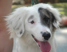 Eloise is an adorable 4 month old female Shepherd/Husky Mix puppy. She is a bit shy, but is taking her cues from the more confident pups she is around. She is learning how to walk on a leash and likes to snuggle!