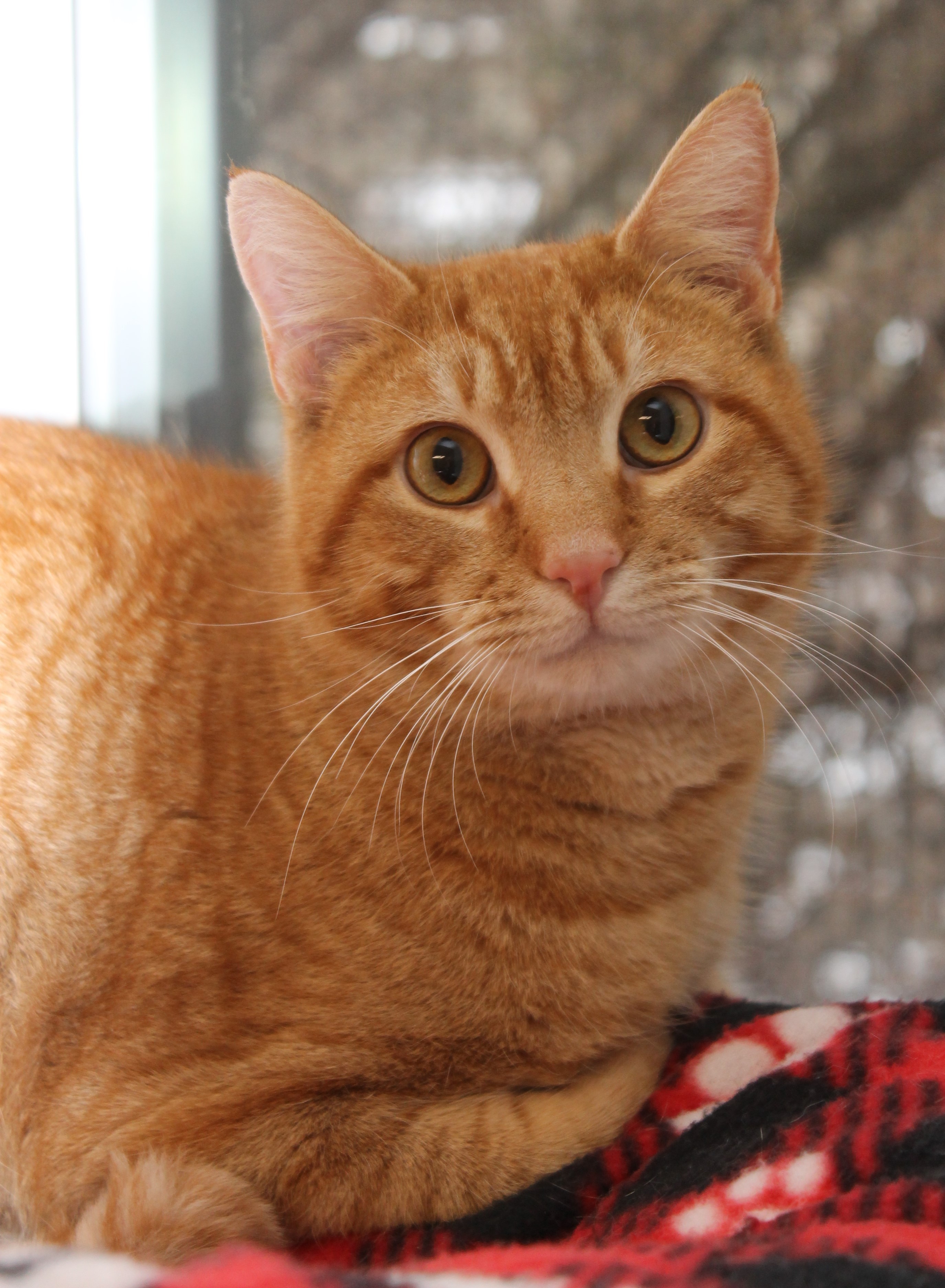 Born December 2023 If orange is your favorite color, this boy is for you! Hobbes is a gentle, affectionate purr machine. He was dumped near a feral feeding station and went running to the nearest person for help. Hobbes is looking for a loving, forever home where he can get as many pets as he wants. He isn't chatty but he's a good listener. Hobbes will give you a charming head tilt and a small meow if you'd like to have a conversation. You'll never be lonely with this handsome boy. He's ready to curl up on a cold winter night with you!