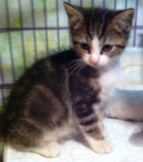 is a sweet 7 week old kitten who loves to play and romp around with his littermates.