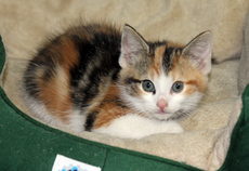 Hannah is an adorable kitten born on 11/12/13. She is in a loving foster home with her siblings and Mom. She is very sweet, friendly and playful. We'd love to see Hannah adopted with one of her siblings.