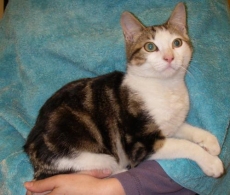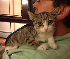 is a cute 5 month old kitten with unique markings. He's very affectionate, loves to play and gets along well with other animals. What a cutie!