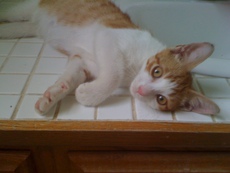 Hazel is a young orange and white female kitty. She showed up at a feral cat colony during feeding time with a tight, tattered pink collar. Obviously and unfortunately, she had been someone's pet who was tossed away. Hazel is super sweet with a loud purr. She loves to be held and is very calm and gentle. Residing in a great foster home, she is exposed to other cats, dogs and kids.