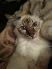 Henry is a wonderful, loving, playful, childlike 10 year-old Balinese (long haired Siamese) male cat in need of a new home. He will make a wonderful companion for a quiet home with folks who are present more than we are and without small children. He has not been the same since we expanded our family recently with a 2 year old and now a 2 month old plus a move! He is like a little kid himself and LOVES attention. A big time lap cat, a mush, who will let you do anything to him. He is long and lean and flexible like a ferret! Unfortunately a foot break last year and arthritis at an early age this year has has lower back/back legs compromised-- so he does limp-- which makes it hard for him to escape our little ones quickly enough. Other than that he is extremely affectionate and a goofball and will purr you to sleep. He just craves attention and will not leave your side. Perfect for a single or retired person with lots of time and love to give. His nickname is "Gumby" for how flexible he is/was.