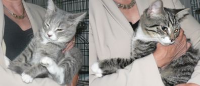 Halo (female) and Keilor (male) are adorable silver tabbies, about 6 months old. They grew up together and enjoy each other's company - they love to play and cuddle. We would love to find them a home together.