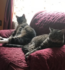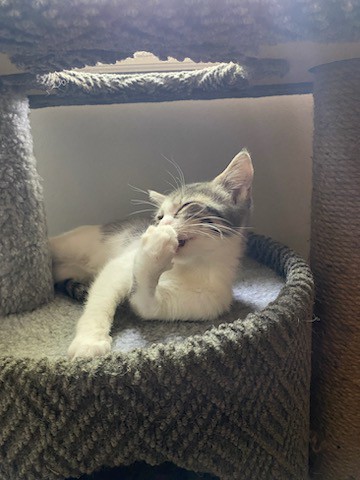 Born April 27, 2021 Liam: Liam is an adorable tabby who is a little shy at first but warms up once you spend some time with him. He loves to be scratched under the chin and will sit in your lap and purr once he gets to know you. He can also be very playful and is a great eater! Lip: Lip is a sweet and curious soul who can be very shy at first but will warm up with gentle petting. Once he is comfortable he will purr like crazy! He loves to eat and play as well and would be best suited in a loving and patient home.