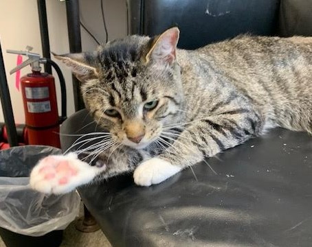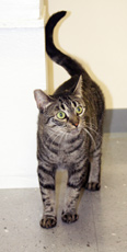 Born August 2020 Lucky is a beautiful young tabby boy with silky, soft fur and the longest tail we've ever seen! He LOVES to be with people and never misses an opportunity to be part of any social activity. He's polite, but he's not shy so be ready for a quick meow just to remind you he's available for petting, playing and a shower of attention. He doesn't mind being carried if you don't mind giving him a lift on occasion and he's not fussy about sharing his space with another friendly feline...though this boy is all the love you need.