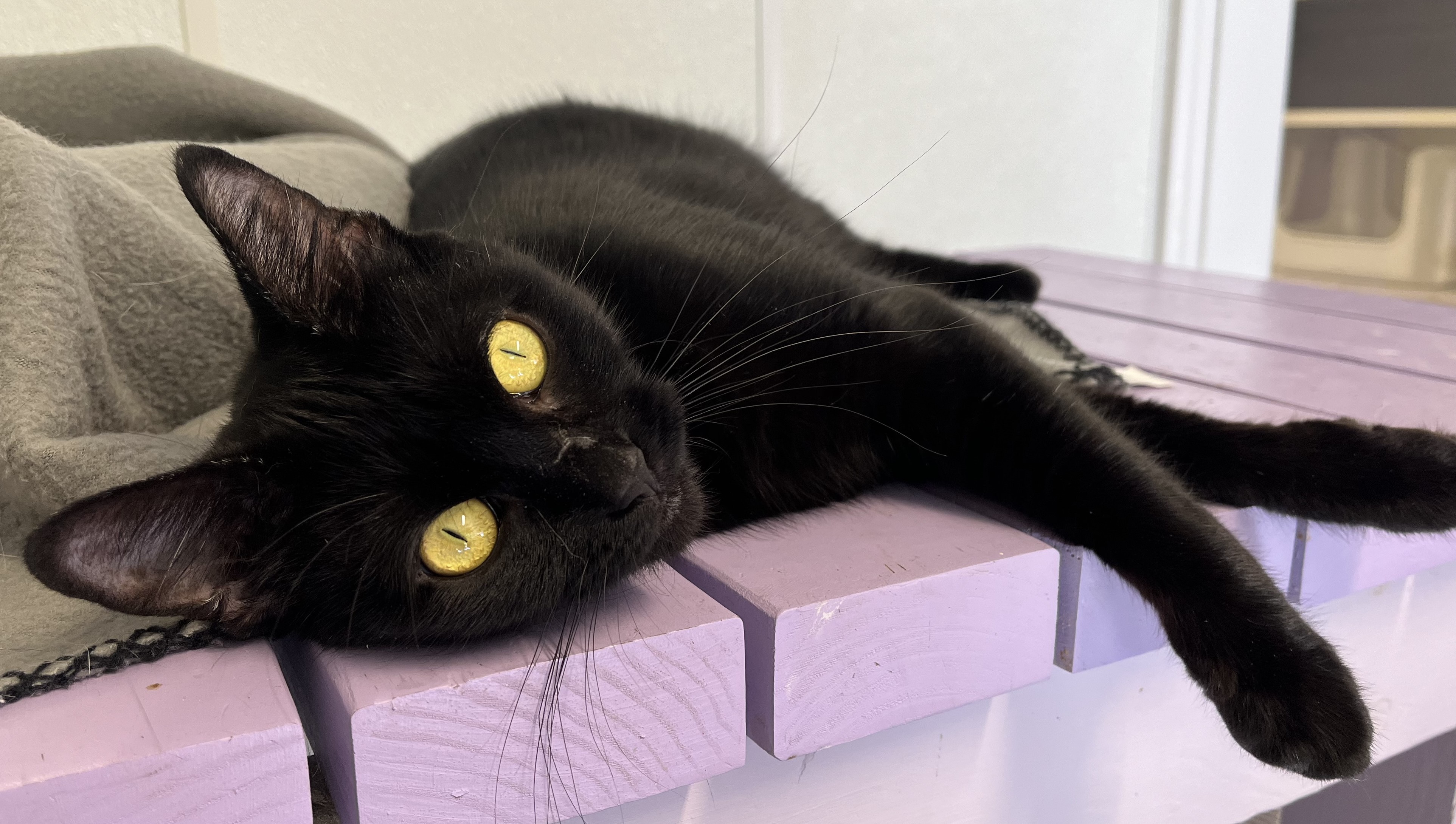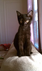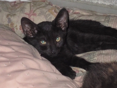 This young cat has the silkiest black fur you've ever seen. It just glimmers and shines. Luna is a real black beauty and a sweetheart to boot. In excellent health and up to date with all shots, she now resides in a foster home.