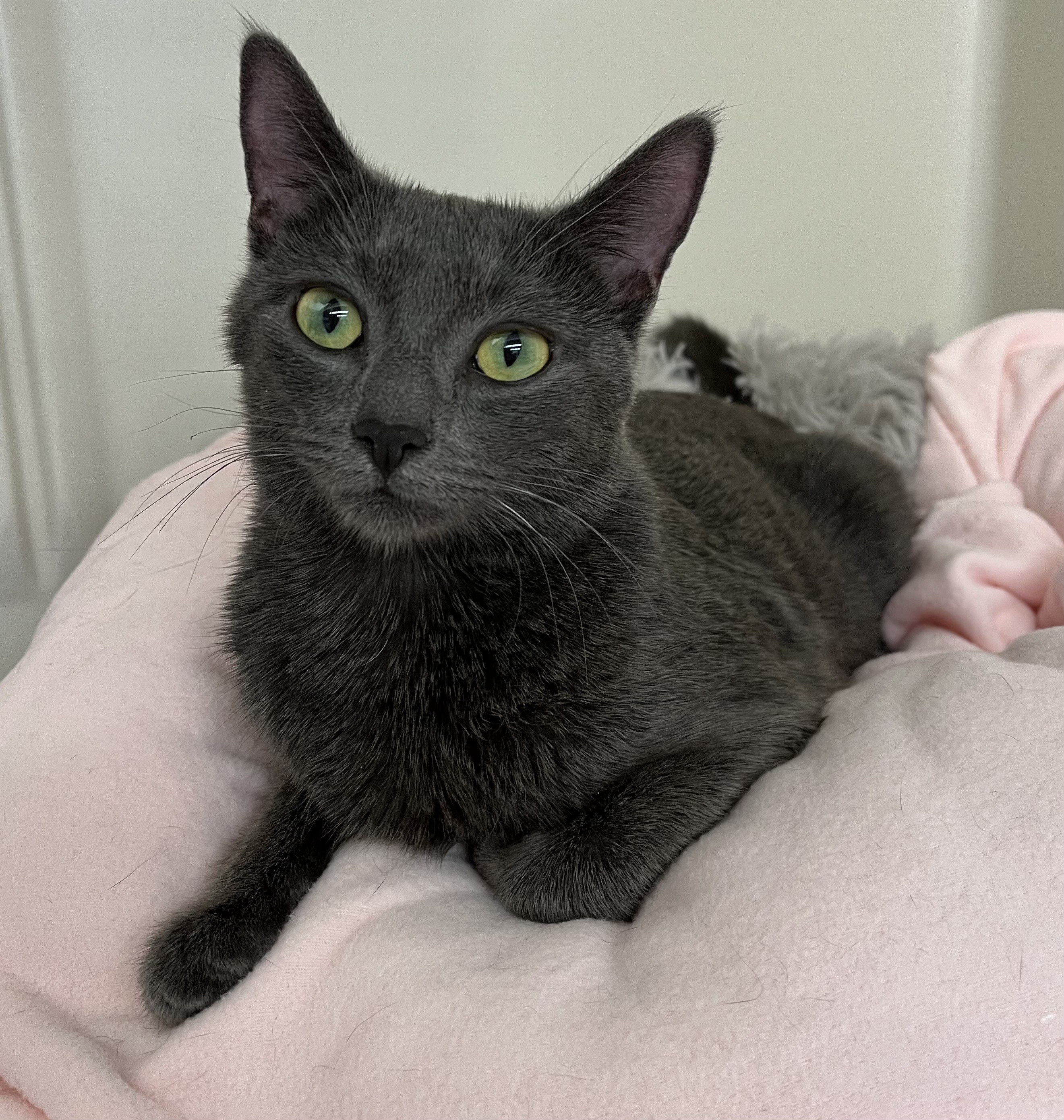 Born November 2020 This beautiful girl is sweet and gentle. Lydia never makes a fuss. She enjoys playing with toys, settling on laps, soft beds and any room with a view. Lydia is comfortable around other feline friends but would be perfectly content in a forever home all her own. She purrs when pet and will encourage you to continue with gentle nudges. Lydia only has one request for her humans, no dogs please.