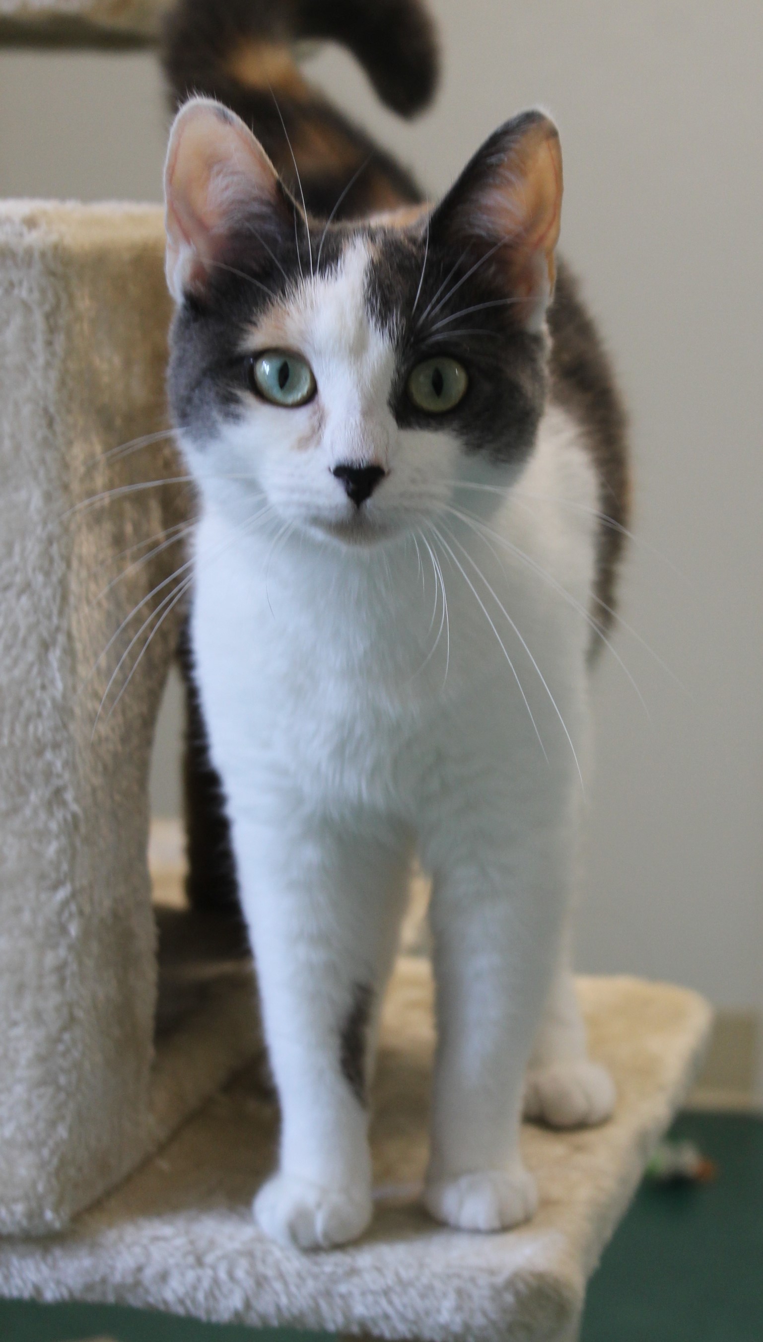 Born October 2022 This beautiful girl is very social and affectionate. Lala is the first one at the door to greet people and get attention. She has a sweet trill when she's happy and will rub her head on your hand for pets. Lala likes to play and will spend time chasing whatever you toss her way. She is comfortable with other cats and would make a great addition to families large and small. No dogs please.
