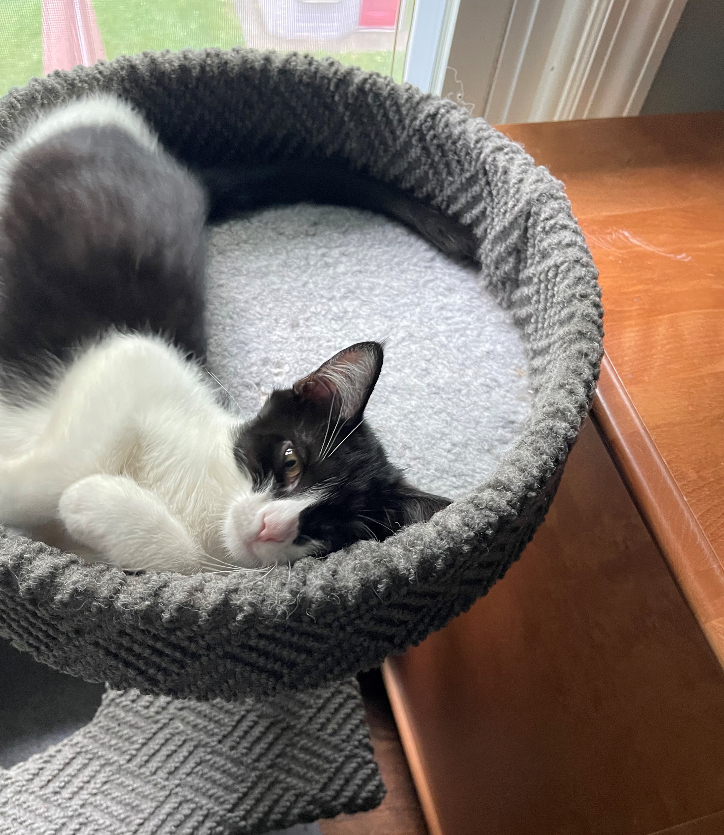 Born March 5, 2023 Laurel is a beautiful little tuxedo boy. He takes a little while to warm up to people but once he knows you, he loves you. Always ready to play, especially with his sister, but also with you. An avid ball chaser and a master of the skippity pap. Loves to have his head and back rubbed endlessly and purrs to show his approval on cue. He is a friendly and loving cat and will make any family happy. Laurel's sister Lilac is also posted on this website.
