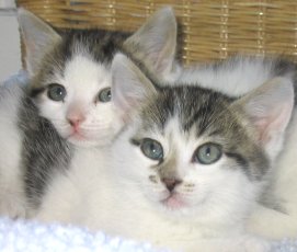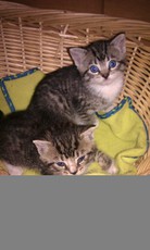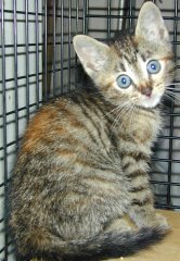 Luna and Skyler are adorable male and female siblings about 6 weeks old (born approx. mid-March, 2011). Luna is a lovely tabby with green eyes, while Skyler still sports those baby blues. The two kittens are calm and very friendly, and being socialized in a wonderful foster home. The duo love to play and keep each other wonderful company. It would be fabulous if they would stay together -- you will find them cuddling each other at any given time of the day.