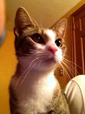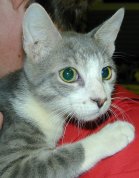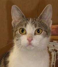 Lulu is an adorable white tabby, about 8 months old and very sweet.