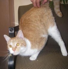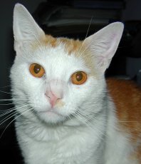 is an exceptional cat, beautiful (he has a red saddle, deep amber eyes, a delicate pink nose) and wise. He likes people and other animals and although some of our other cats treated him badly when he first came on the scene, he just stood back and waited until they were ready to be friends. He has a long lithe body like a lion and likes to explore and bat toys and empty boxes around when he is not stretched out sleeping. He is under two years old.
