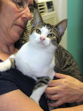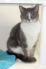 This wonderful senior declawed cat is one handsome grey and white tabby with a sweet, gentle personality. About 11 years old, Lucky currently lives with his family (and another cat, Moose) who adore him and hate to let him go. But due to an unusual medical condition that their young child has developed, no cats can be in the household. Along with being declawed, Lucky is neutered, in excellent health, alert, curious and all in all, one great feline! Please call 914-244-3856 to inquire about Lucky.