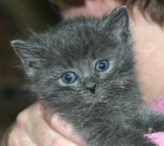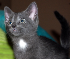 Only sweet little Luna, a beautiful gray female Russian Blue, remains to be adopted from this gorgeous litter (her three siblings are now in their forever homes). Now about 13 weeks old, Luna is lots of fun, charming as can be and everything you'd want in a kitten. This little bundle of joy looks forward to moving to a home where there is another kitten or cat for her to play with, as she misses her siblings. To meet Gwen's Luna, please e-mail madie96@aol.com.