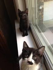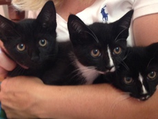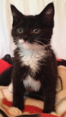 Here come the three Larchmont Train Station Kittens! We were found at the Larchmont train station on July 1, 2015 and are about 14 weeks old now and ready to be your new best friend. Thomas (a/k/a Bernard) may be one-dimensional in color (all black) but his personality is multi-dimensional! He loves to play, be petted and be held. He is so happy all the time and purrs almost constantly. Molly (tuxedo a/k/a Beatrice) is the one female among this trio and was just adopted. Percy (also tuxedo and a/k/a Benson) is a little more laid back than his siblings and really enjoys the unlimited food at his foster home. He loves to play with string and chase balls. He likes to be held but will purr if he hangs out and you pet him.