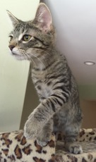 This darling little tabby is friendly and playful. Raised with 4 other kittens, she is looking for a house full of fun and games as well as lots of love. About 12 weeks old Libby is UTD on her shots and ready for her forever home.