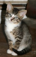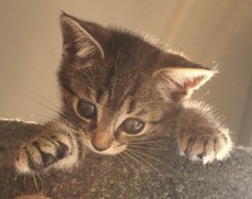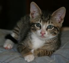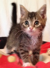 is an adorable 8 week old Tabby kitten. Playful, friendly and curious.