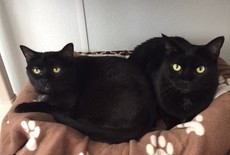 "Leo (male) and Shades (female) are two beautiful black sibling cats with sparkling eyes. Rescued by a Pet Rescue volunteer at the tender age of 5 wks old, and adopted soon after, Shades and Leo were returned to Pet Rescue 5 years later when their owner ran into financial difficulty. Shy at first, these two kitties will cuddle together like the brother and sister they are, but can be independent also. Leo and Shades can be adopted separately, would love to stick together if possible. Both Leo and Shades get along with other cats, people, gentle children and are very gentle kitties.
