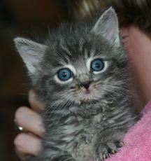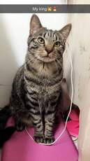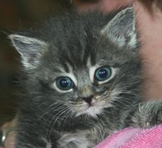 is an adorable 7 week kitten, playful and cuddly. As he is quite small, we are looking to place him along with one of her grey siblings.